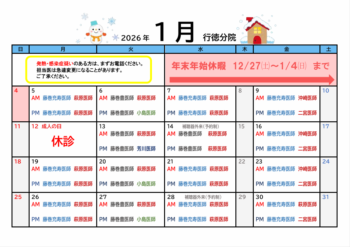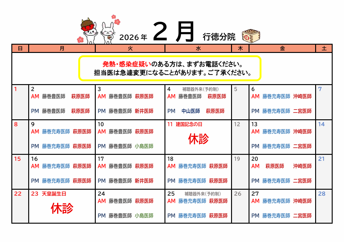 急遽、担当医が変更になる場合があります。詳しくは、お電話でご確認ください。